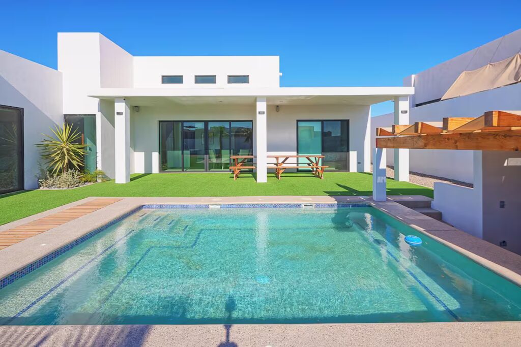 This is a beautiful new home with four spacious bedrooms, fully equipped with all the essentials, plus excellent amenities such as a fire pit, a sand volleyball court, and a private pool. You’ll also have full access to the amenities of the Laguna Shores Resort, which are absolutely wonderful. ✨